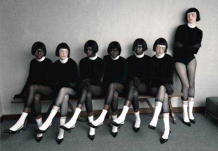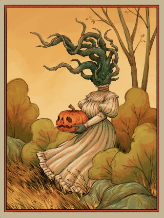 alt : semblant émerger des profondeurs, une tête de femme sculptée à la chevelure rainurée