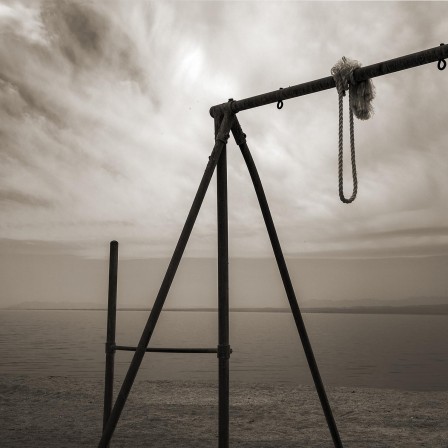 alt : New York sous la pluie ; devant la fenêtre aux carreaux couverts de gouttes, la statue d'un coq