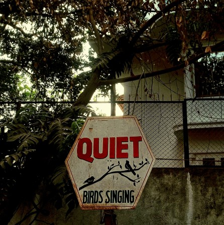 un bateau s'avance en pleine forêt amazonienne, un phonographe à sa proue joue un air d'opéra