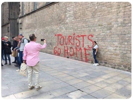 alt : des taxis jaunes stationnés en masse devant une église d'Italie noyée dans le smog